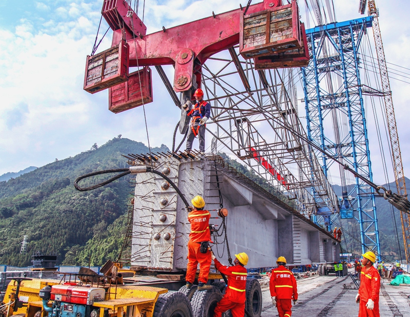 11月9日,在建世界最大跨徑拱橋——天峨龍灘特大橋主橋順利貫通,120片預(yù)制T梁吊裝工作全部完成,至此,特大橋進(jìn)入通車倒計(jì)時(shí)。