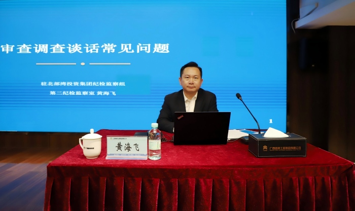 為進一步提升紀檢監察干部審查調查專業能力,夯實監督執紀問責基本功,2026年3月17日上午,自治區紀委監委駐北投集團紀檢監察組第二紀檢監察室主任黃海飛一行來到廣西路橋集團,開展案件審查調查談話業務專題培訓,全體紀檢監察干部參與培訓。